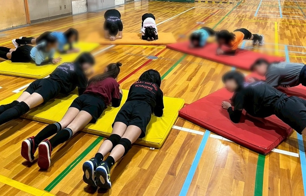 体育館に戻ってからは、フットワーク練習と体幹トレーニング。